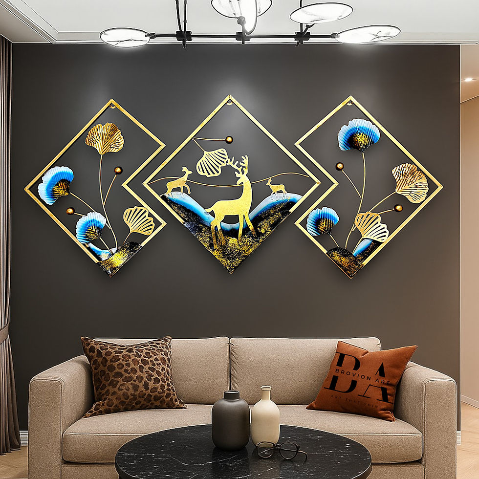 Upgrade your walls with this stunning set of 3 metal wall art panels featuring elegant gold and blue leaf patterns. Perfect for living rooms, bedrooms, hallways, or offices, this artwork adds a stylish and modern touch to any space.